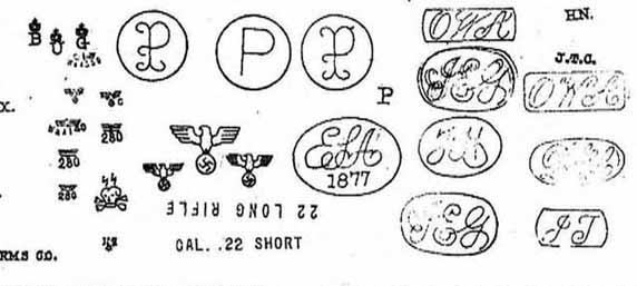 Debería tener además marcado en diferentes partes del arma un número de 4 cifras seguramente seguido de una letra minúscula a modo de sufijo que correspondería con su número de serie