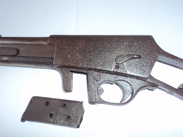 Más fotos,a ver si hay suerte.Por el cerrojo parece de un calibre mucho mayor ¿no?.El cargador va alojado en la parte delantera del guardamonte.