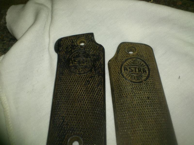 Según creo entender en el libro de D. Leonardo Antaris, esa pistola es de 1937 y formó parte de un lote de 575 que fue robado en Burgos al Gobierno de la República por las tropas de Franco. No se aprecia si la ausencia de las marcas propias de Unceta y compañía son proceso de falta de marcaje o de borrado, porque aparentemente se la ve muy maltratada. Personalmente (y esto es una simple opinión) me inclino por una eliminación posterior y que de fábrica salió con el logo de Astra y con las inscripciones propias de ese modelo. De hecho, en el segundo de tus mensajes y sobre todo en la última de esa serie de fotos, parcecen adivinarse algunas letras de la leyenda. En caso de ser así, con una buena lente probablemente podrás descubrir algunas de ellas.