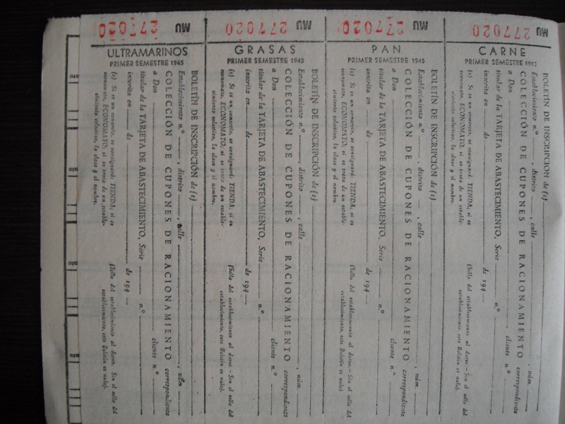 Cartillas Racionamiento. Comisaría General de Abastecimiento