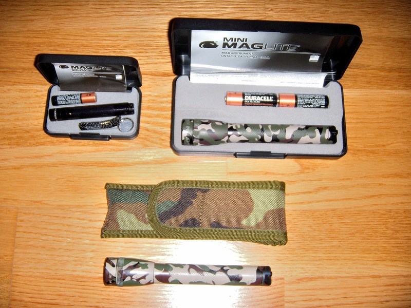 Se entregan con estuches originales (Maglite Solitarie y Mini MagLite Camo) y caja (MagLite 2D). La otra Mini MagLite va en funda de nylon de camuflaje.