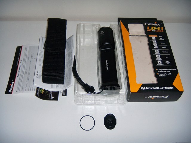 Linterna Fenix LD41 en perfecto estado, sin uso. Incluye caja, instrucciones, tarjeta de garantía, correa, funda, junta tórica de repuesto e interruptor de repuesto.
