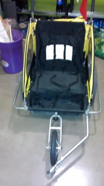 Buenas, vendo este remolque para bicicleta para dos niños, dispone de amortiguacion y se puede poner una rueda delantera para usarlo paseando o jogging. Esta en perfecto estado ya que lo use en dos ocasiones. Su precio 95 euros con portes a la peninsula incluidos. Saludos.