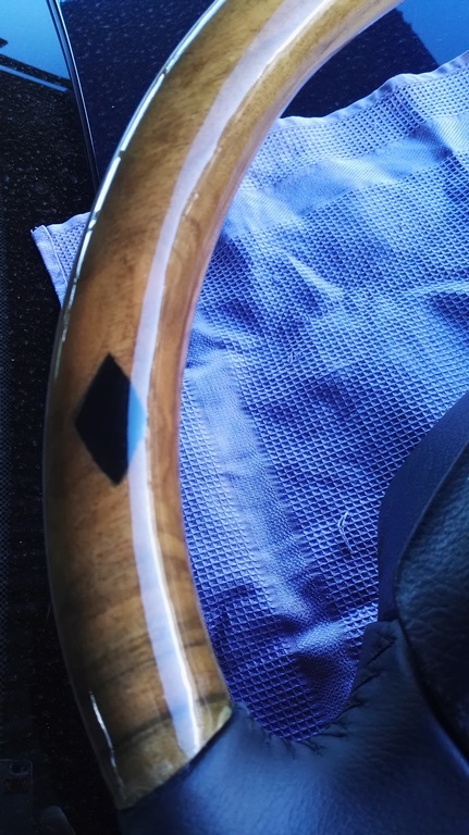 Se trata de un volante hecho por el en madera de RAIZ de NOGAL con incrustaciones de ébano. esta tapizado en cuero, a estrenar...