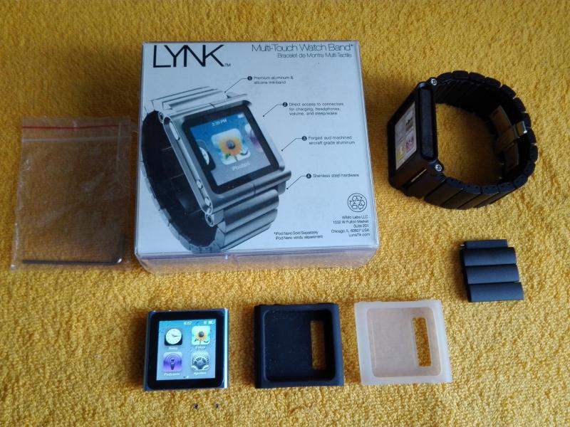 - LunaTik Multi-Touch Watch Kit (el modelo de lujo de aluminio) en su caja con eslabones suplementarios y herramienta para desarme.