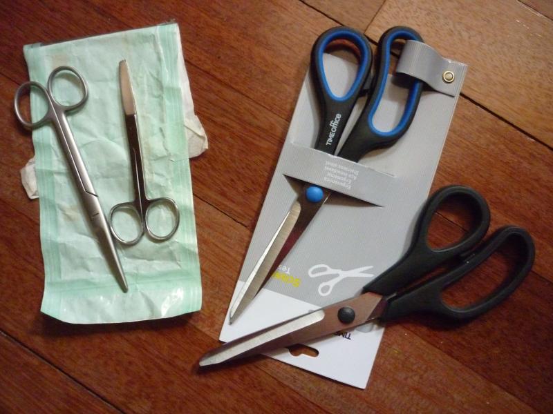 Las de oficina miden 21 cm, y las de acero quirurgico miden 15 y 12 cm respectivamente.