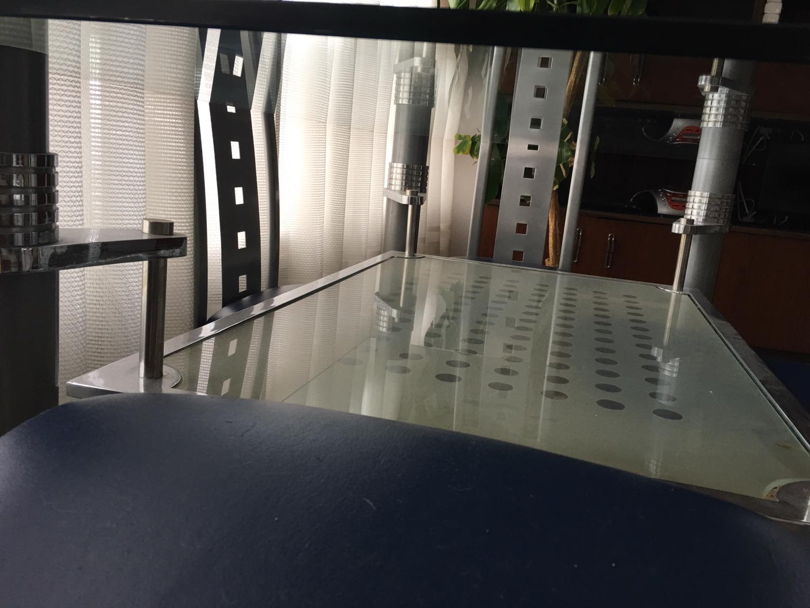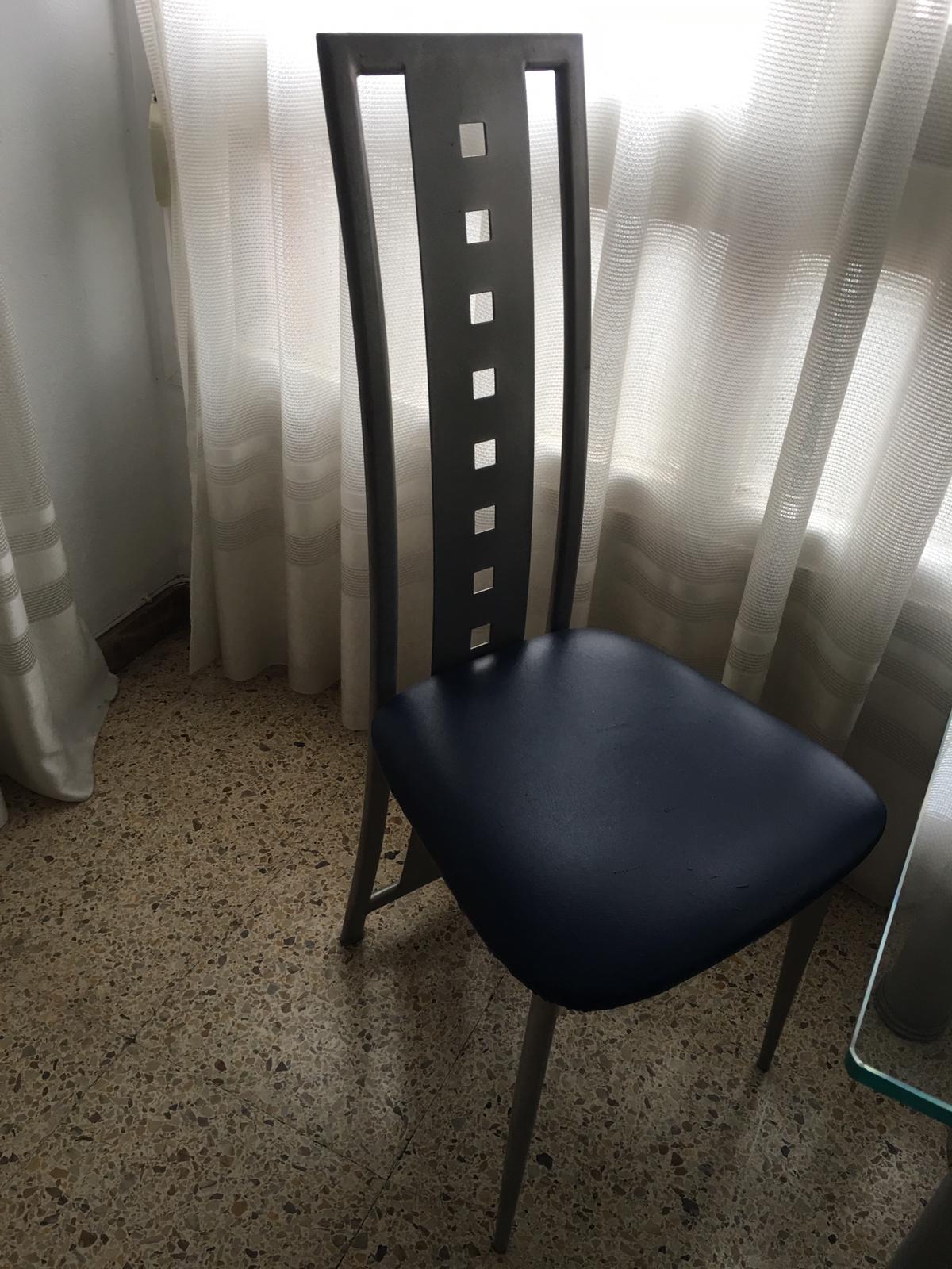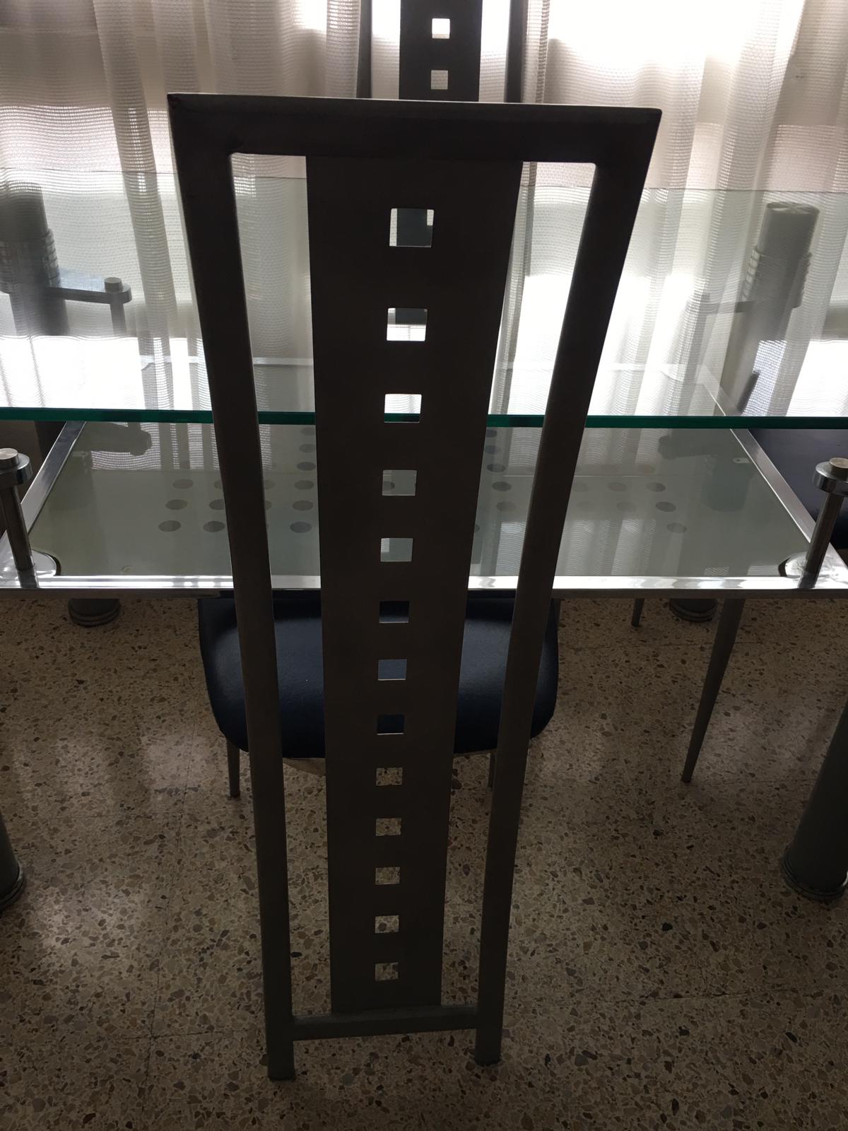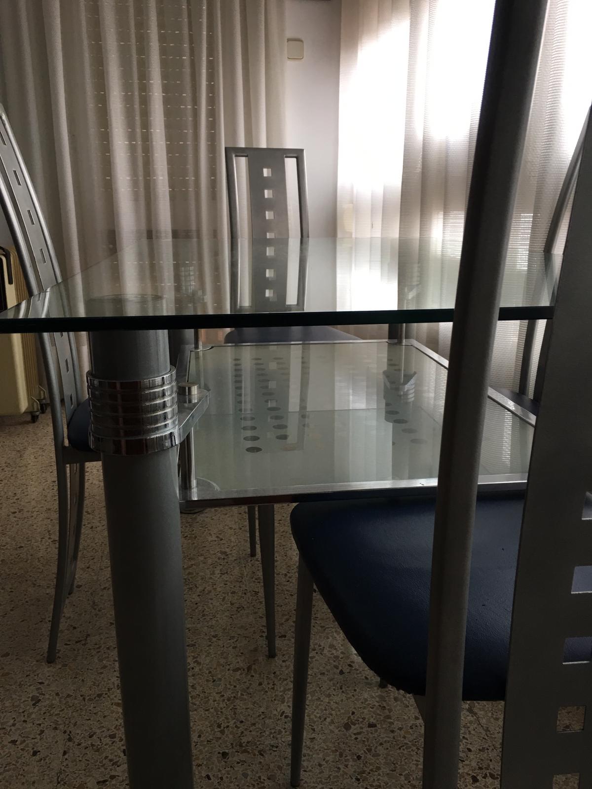 Mesa de cristal y su juego de cuatro sillas de diseño, prácticamente nuevas,por 250 euros,se encuentra en Barcelona capital.