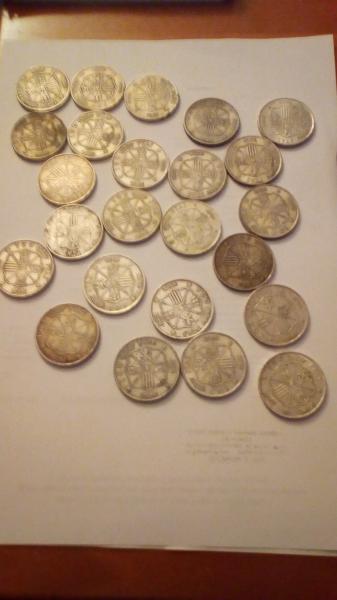 Vendo un lote de 24 monedas de plata . Son de 100 ptas de franco.