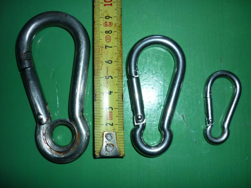 Vendo tres mosquetones de acero inoxidable, uno de 10 cm con pasacabos, otro de 8 cm, y el pequeño de 5 cm, los dos ultimos sin usar. 9 euros los tres con envio incluido por ASM GO (a recoger en agencia).