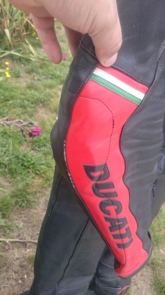 Hola,vendo mono de cuero de dos piezas Dainese Ducati talla 52,el motivo de la venta es que ya no me entra,esta en buen estado,solo tiene unos roces en la parte baja de las piernas de ir dentro de las botas y otro en la manga derecha de aporyame un dia en una pared de una obra,tambien le falta el tirador de la cremallera,se rompen todos,y le tengo un clip es su lugar el cual funciona perfectamente,el precio 300 euros puesto en destino en peninsula,si alguien necesita fotos mas detalladas no dude en pedirlas,el mono esta en la coruña.