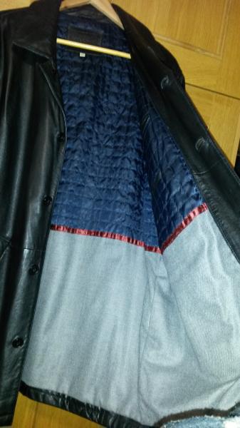 Chaquetón de tres cuartos de cuero color negro. Forrado y con dos bolsillos dentro.