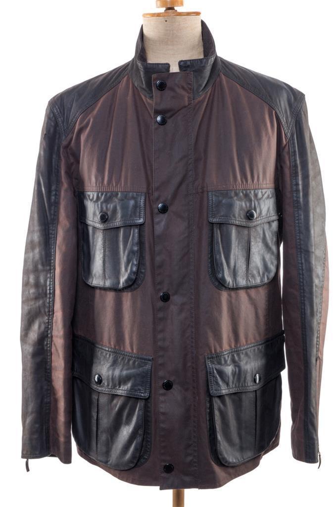 IMPERMEABLE y TRANSPIRABLE. Hecho de 100% ALGODÓN ENCERADO MIXTO CON BOLSILLOS ,CUELLO Y MANGAS DE CUERO.