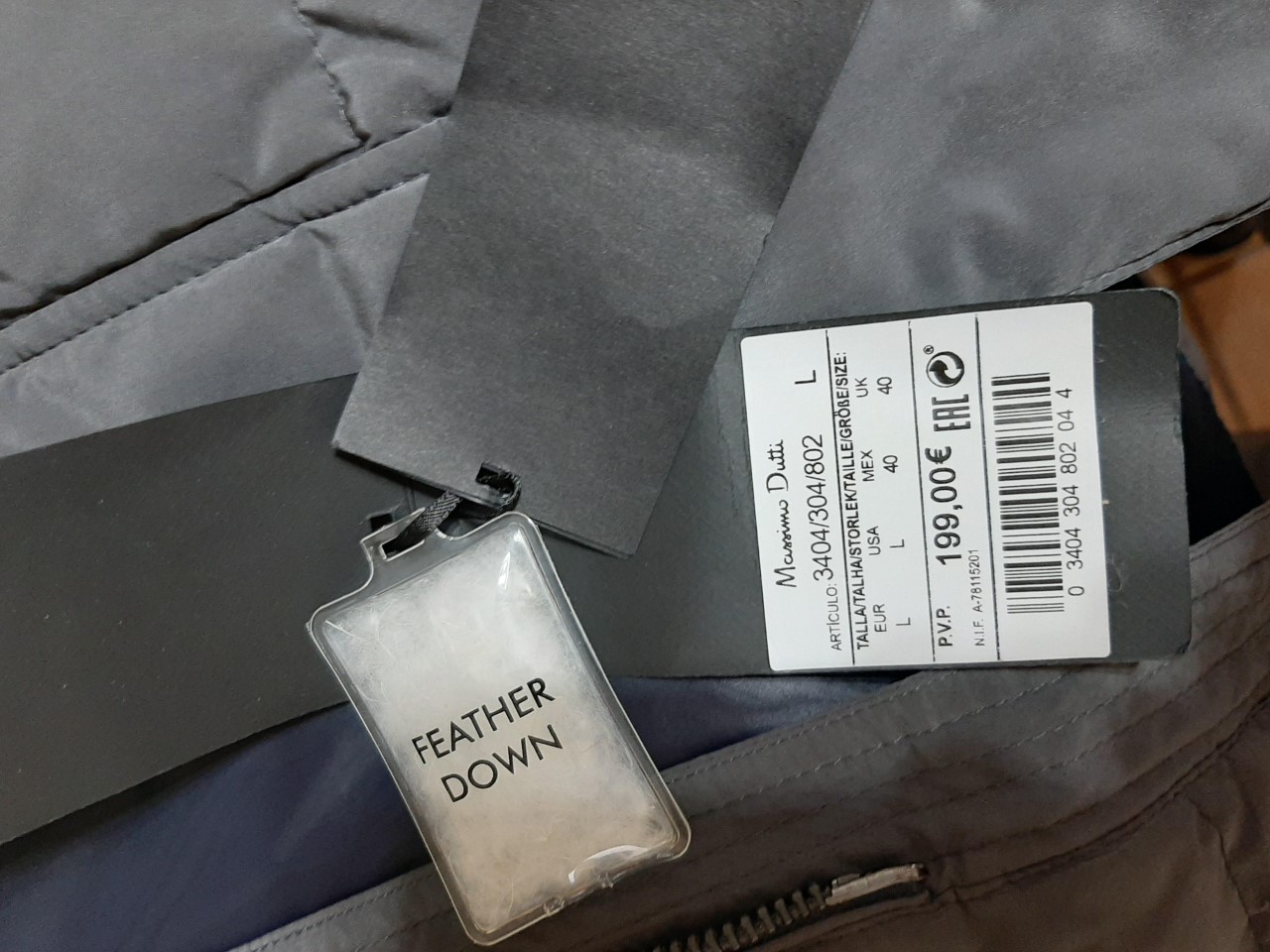 Vendo Chaquetón de plumas tres cuartos Massimo Dutti color gris y talla L ,nuevo a a estrenar con etiquetas,puños dobles y múltiples bolsillos ,capucha desmontable y borde de piel desmontable.