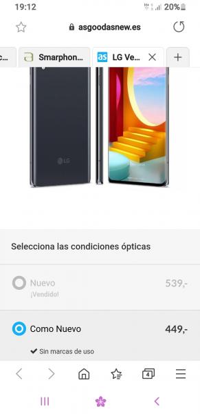 Aqui lo tienes por 369 IVA incluido https://asgoodasnew.es/Moviles/LG/LG-Ve ... m=kelkooes