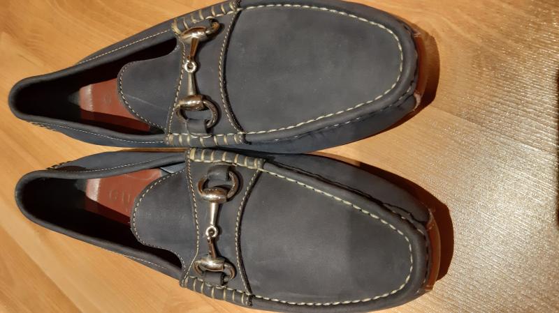 VP70Z escribió:Mocasin Gucci clásico,fabricado en piel color azul, exterior piel vuelta y suela de cuero con inserción de goma, puesto dos veces, pequeñísimas ligeras marcas de desgaste en la puntera de la suela por el tipo de fabricación. Talla 44 E aunque perfecto para un 43.