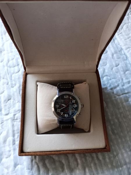 Vendo reloj AVIADOR edición limitada, con número de serie 1061/2000. En acero inoxidable, resistente al agua y correa de piel. En muy buen estado. Con su caja original. Funciona correctamente y se puede apreciar que el cuero está nuevo. Tiene unas leves marcas en la esfera, casi inapreciables. Envío fotos de detalles a interesados.