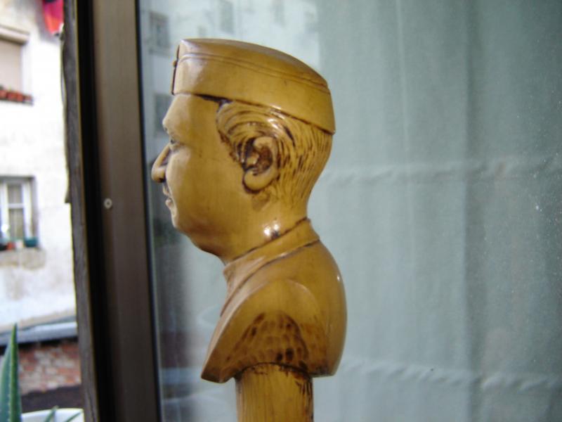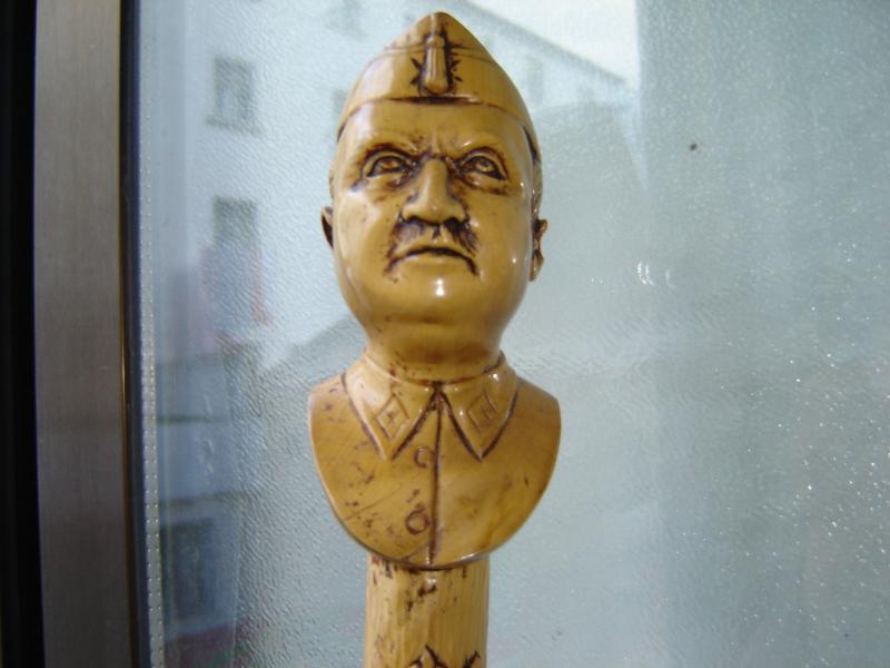 hola . vendo baston tallado con la " cabeza del generalisimo " tiene parte de una oreja rota , pido 100 € . gracias