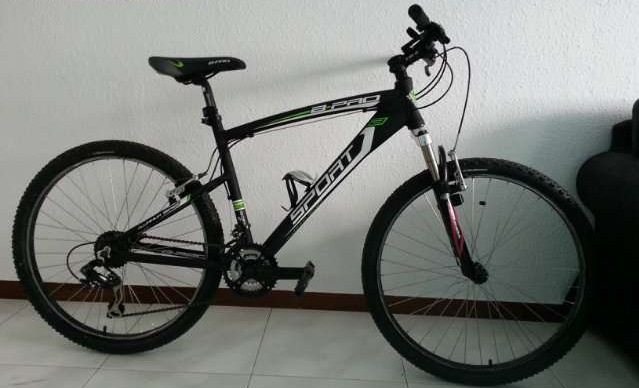 Bicicleta de montaña con sólo un uso. Es una B-PRO SPORT CBO, la cogí una vez y como no me gustó la horquilla se la cambié por una hidráulica que aún no se ha estrenado. Van más de 100€ en accesorios. La talla no sé cual es exactamente, pero yo mido 1.70 y al cambiar la horquilla se suplemento la altura del manillar con dos casquillos. Calculo que hasta 1.85, puedo dar medidas de manillar y demás.