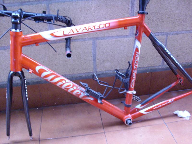 Esta bicicleta no es mía,le hago un favor a un familiar,yo tengo algo mas modesto,una cannondale del equipo saeco,(Cipollini y compañía),que corrió en su día la Paris-Roubaix,ya con sus añitos y de aluminio,pero una buena bicicleta.