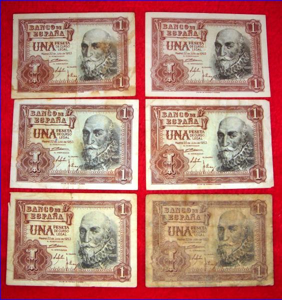 .- 6 Billetes de UNA Peseta (22 DE Julio de 1953