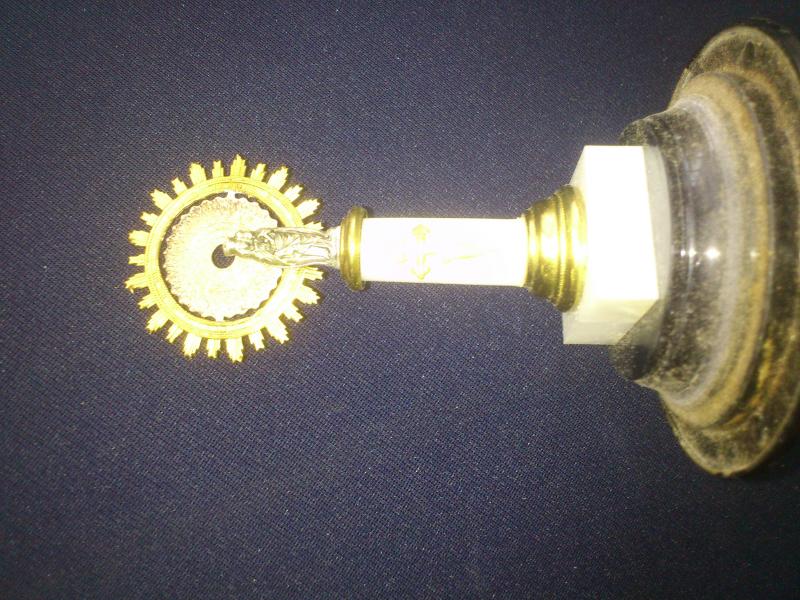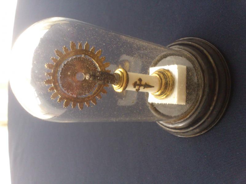 Vendo esta imagen de los años 40-50 metida en su urna de cristal, es una pieza muy bonita, esta completa , ha falta de dos pequeños tornillitos que iban en la base con un cachito de madera, que estaba apolillado y lo he retirado