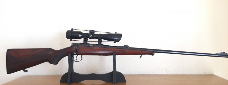 Calibre 22 con 2 cargadores de 5 y de 10 y visor WALTER 4 X 32 COMPACT, con protectores y corte antideslumbramiento