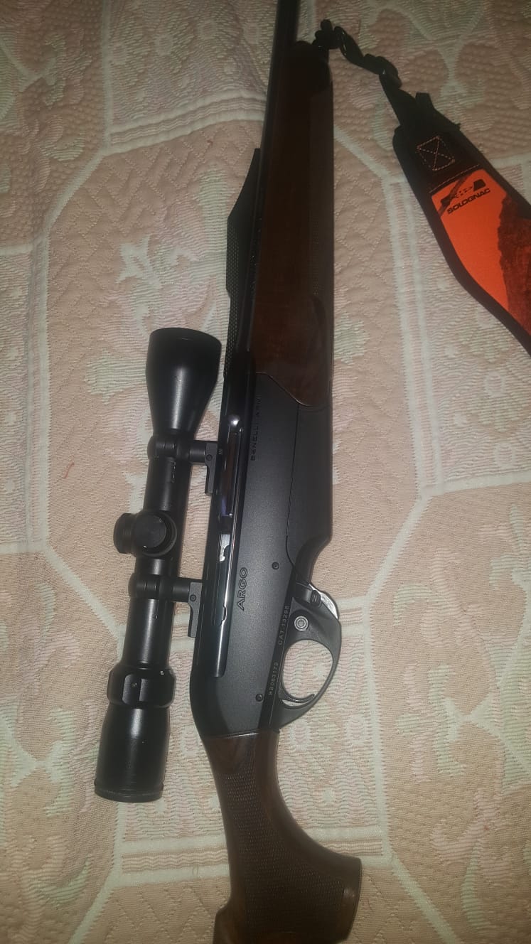 Se vende Benelli Argo 9,3x62. Practicamente nuevo, con pocos tiros. Correa porta fusil, bases y anillas Leupold y visor Bushnell Trophy 1,5-6x44.
