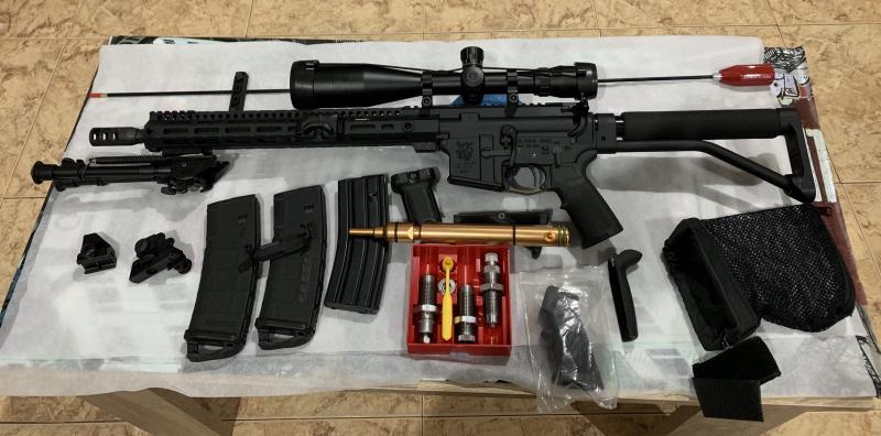 Buenas vendo ar-15 del 222 rem con mira telescópica bushnell elite de 4,5-30x50 y tubo de 30 mm y anillas nightforce guardamanos MIDWEST INDUSTRIES empuñadura magpullculata RIFLE STOCKS lleva puesto un disparador timmey de 3 lb dos cargadores magpull y el suyo metálico de dos cartuchos también se entrega el kit de limpieza con gratas y demás accesorios y sus elementos de puntería bipode empuñaduras delanteras también entregó su disparador original y su freno de boca original el que lleva se lo puse también y juego de dais marca lee deluxe y mochila de transporte acolchada por dentro,lo vendo todo por 2500€ el visor y el rifle se puede vender por separado no acepto cambios