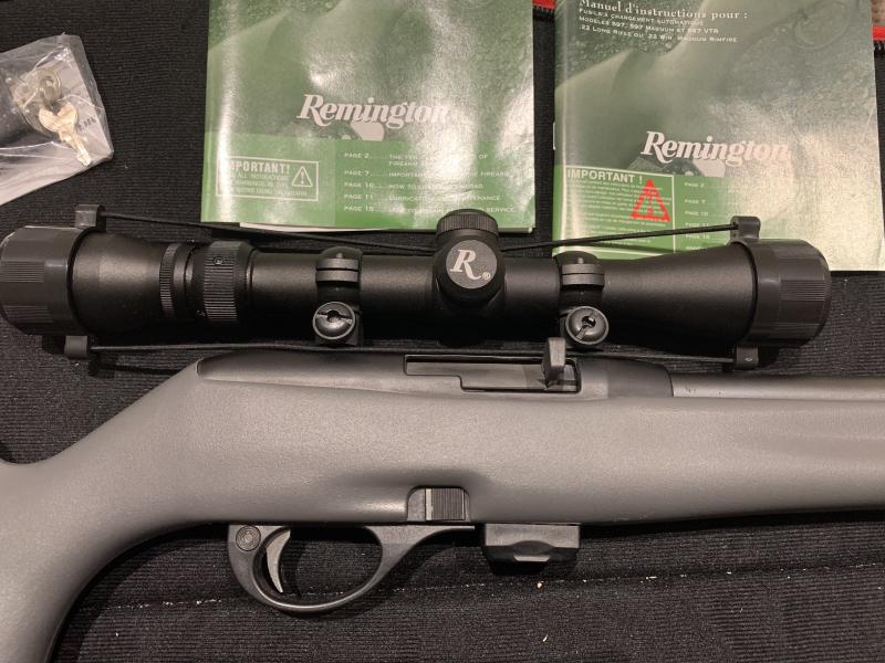 Impecable, nueva, habrá disparado menos de 500 tiros. Culata sintética, cargador con capacidad para 10 cartuchos. Mira telescópica original Remington de 9 aumentos. Regalo cargador de gran capacidad (30 cartuchos), correa y funda. Agrupa muy muy bien, admite todo tipo de munición sin interrupciones, incluidas balas subsónicas. Precio 300€