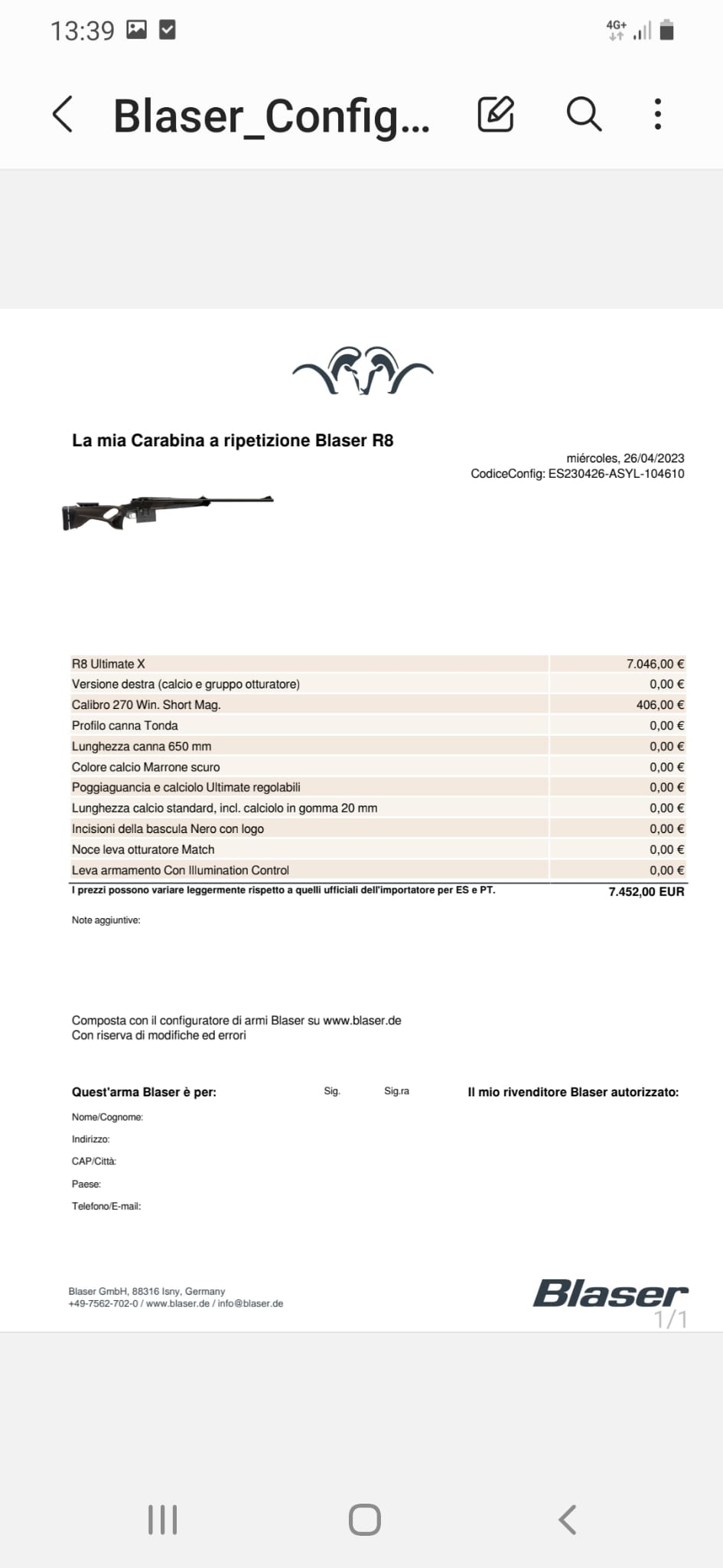 Vendo Blaser Ultimate X en un estado excelente, comprado en noviembre y con aproximadamente 100 tiros, con su garantía y los extras premiun de Ultimate, culata extensible, carrillera retráctil, etc... lo quito por no adaptarse a mi modo de caza, ideal monterías con puestos de balcón, cargador de 10 tiros, apunta dispara y disfruta del lance, olvídate de las engorrosas recargas....El rifle se encuentra en Burhos 5500€
