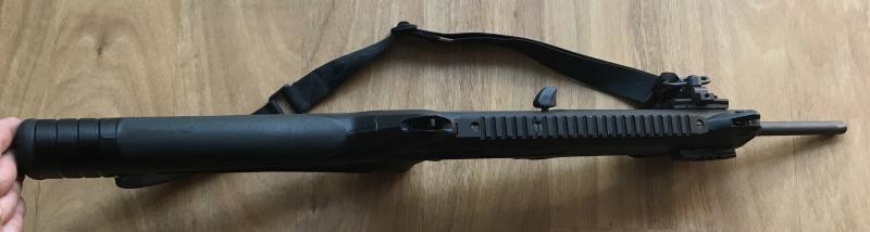 Funciona de maravilla, está en perfectas condiciones y lleva montados los carriles picatini laterales, la correa táctica original y una anilla de anclaje lateral en el picatini.