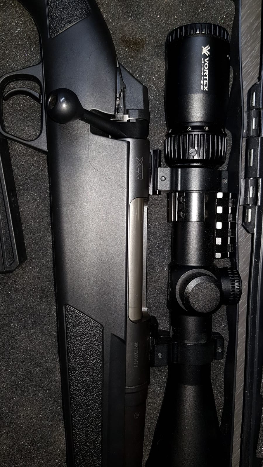 Se incluye Visor Vortex 3-12x56 Hog hunter (Grantia VIP), 2 cajas de munición y maletín de transporte