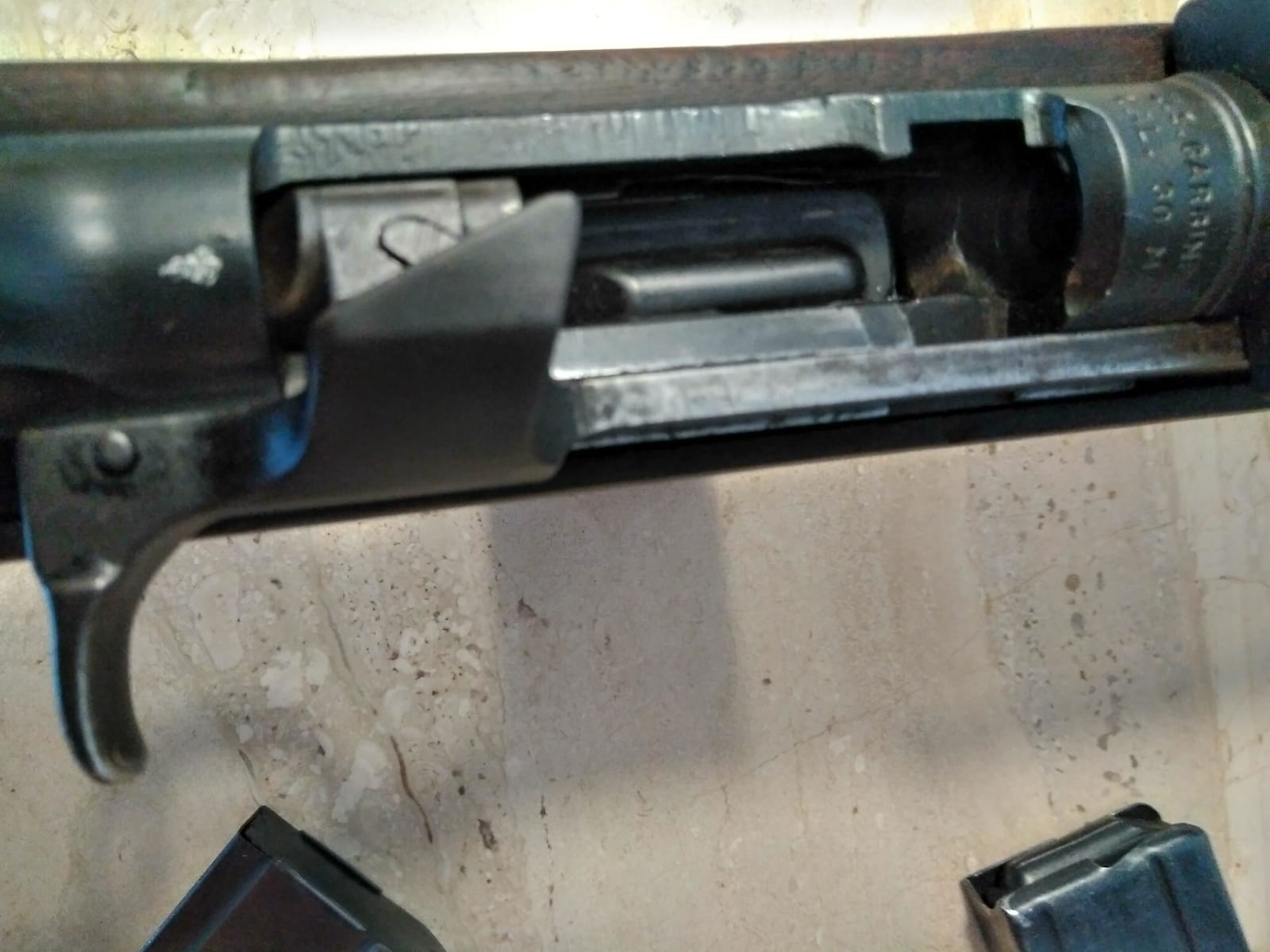 Un compañero del club de tiro me ha pedido que cuelgue este anuncio por él. Se trata de una carabina M1 original de la segunda guerra mundial, en configuración típica de final de guerra (alza regulable, seguro rotativo, enganche para bayoneta). El arma se acompaña con 2 cargadores, y está en la provincia de Tarragona.