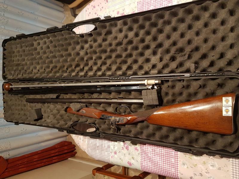 Vendo por cese en la actividad, ESCOPETA Avancarga cal.12, 2 cañones uno largo y el otro un poco más corto, con maleta transporte y baqueta.