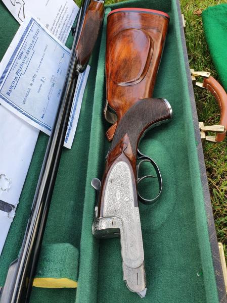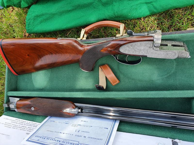Exclusivo rifle Express EGO modelo exclusive, calibre 9, 3x74R , maderas seleccionadas de raiz de nogal, expulsores, gatillo articulado, salida de gases raberas superior e inferior, recamara, bandas, pletinas largas, todas grabadas con finos grabados holland&holland, cantonera holland, deposito de municion en culata, hecho por encargo, su maletin original Ego,con sus papeles del banco de pruebas , es un arma muy exclusiva y creo hay muy pocas, costo 12000€ y se vende al 50% de su costo. solo verdaderos interesados en comprarlo.Subire fotos.Un saludo compañeros, mucho animo y fuerza en esta situacion.Subire fotos.