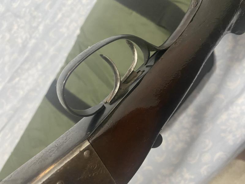 Es de dos gatillos y de madera está bien y pavonado para los años que tiene también están bien, solo algunas picaduras en la punta.
