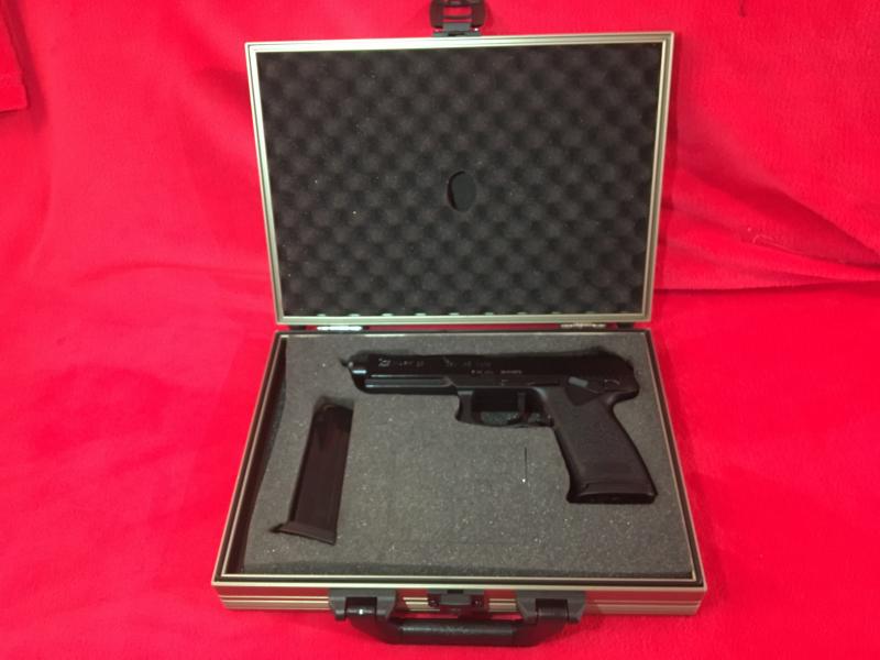 Está prácticamente nueva con un par de cargadores disparados. Viene con su maletín y dos cargadores. Muy precisa.