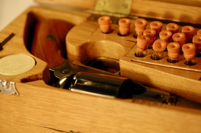 Modelo NEW MODEL ARMY, SANTA BARBARA, CAL.44 en muy buen estado, en el precio se incluyen: Revolver + Caja madera de roble + Bolas plomo + Pistones + Pólvora negra + Turquesa (para realizar la munición), todo ello por 250€
