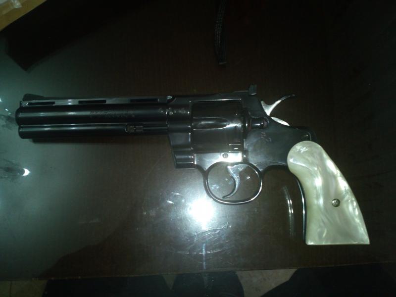Hola pongo en venta la joya de mi corona Colt Python en perfecto estado de 6" con tres cachas(originales, anatómicas hogue ,y otras de nácar blanca muy difíciles de encontrar) 1000€ con portes precio algo negociable