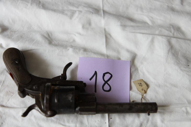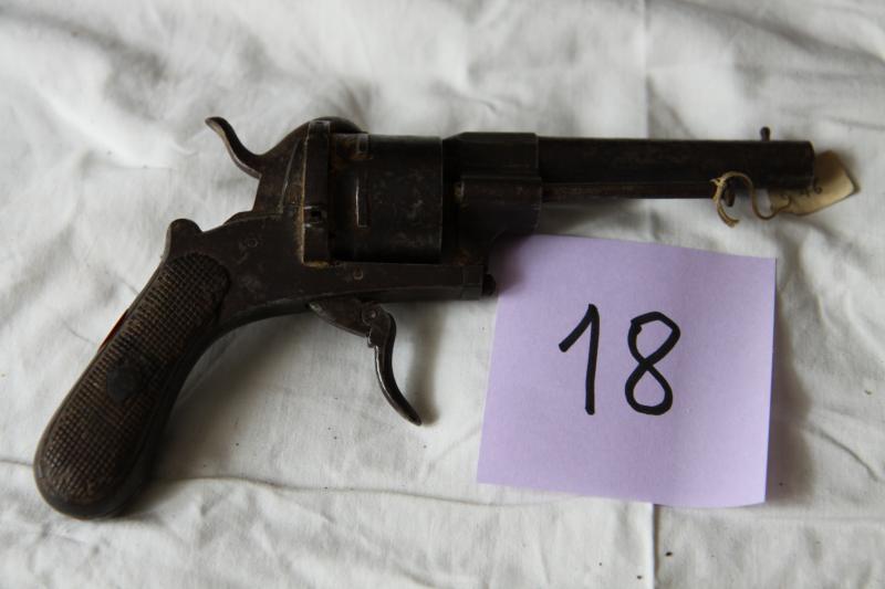 Revolver de retrocarga, de seis tiros. Fuego anular. Mecanismo tipo Lafoucheux.