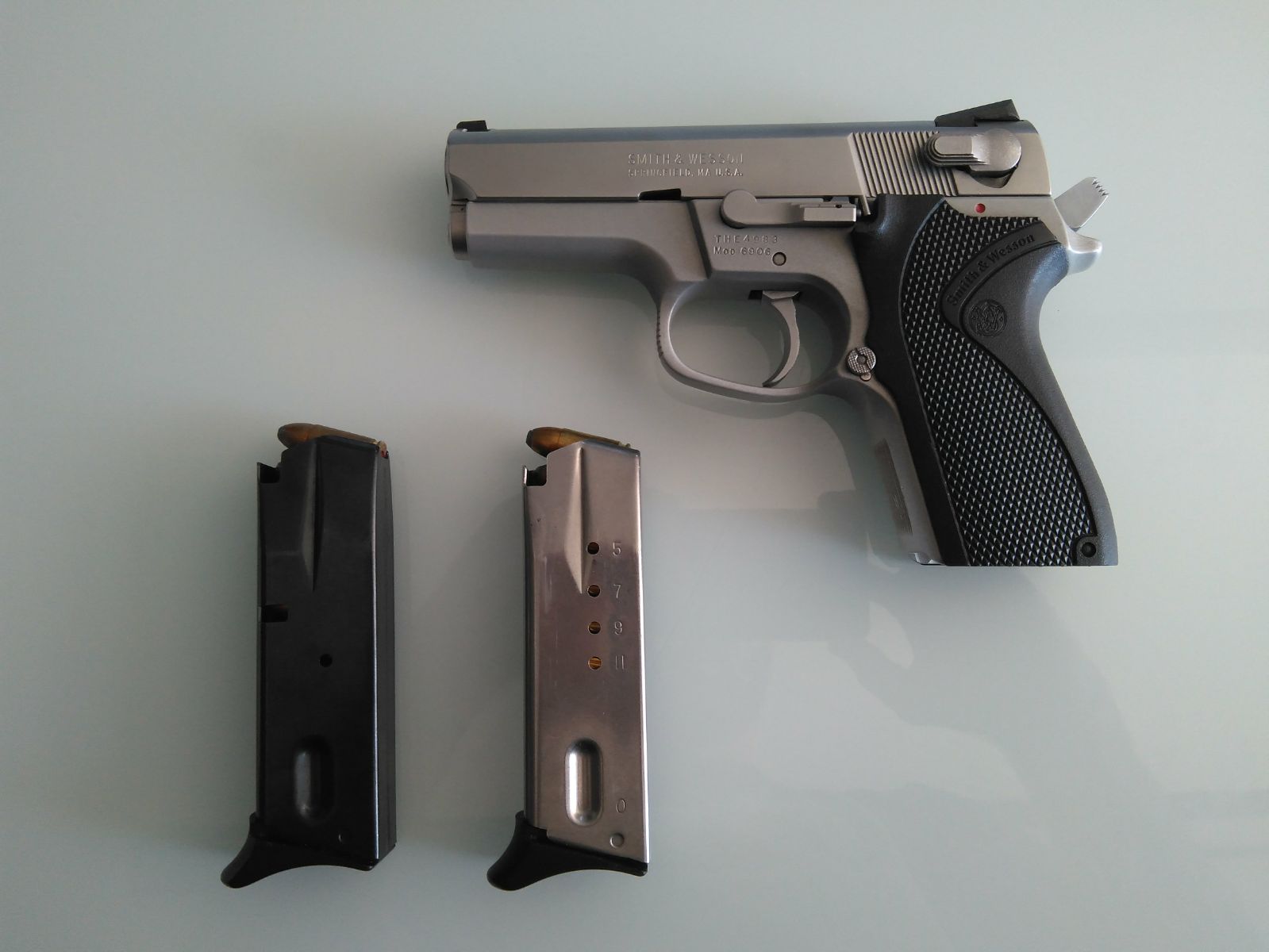 Arma compacta, de martillo sin espolón, dobles acción,. Inox, Cal. 9 Pb, con dos cargadores, en perfectas condiciones y funcionando de maravilla.