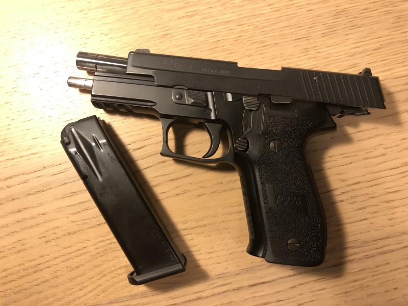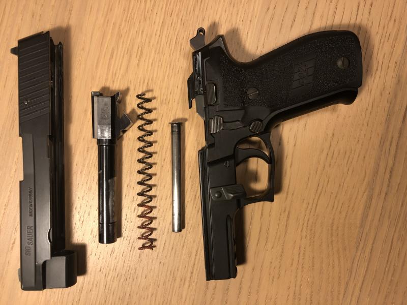 Sig Sauer P226R (raíl Picattiny) kit SRT y disparador de serie, cachas hogue anatómicas y las originales de Sig, alzas micro métricas y Alzas y punto de mira de combate. Dos cargadores (18 y 17 cartuchos). Se regala funda de cuero suiza de porte oculto específica para el arma.
