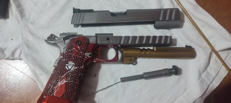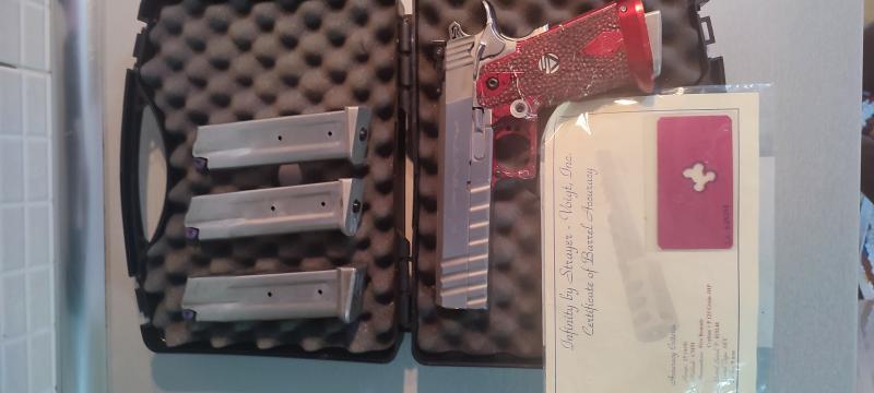 Vendo por no usar Infinity 2011 9mm con muy poco uso..la vendo con 4 cargadores más empuñadura y disparador Infinity.