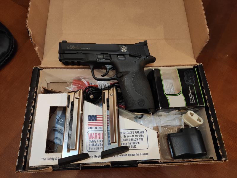 Vendo smith and wesson m&p compact 22lr en perfecto estado, muy pocos tiros.500€ con caja original y todos sus accesorios (incluye láser) guiada en "F"