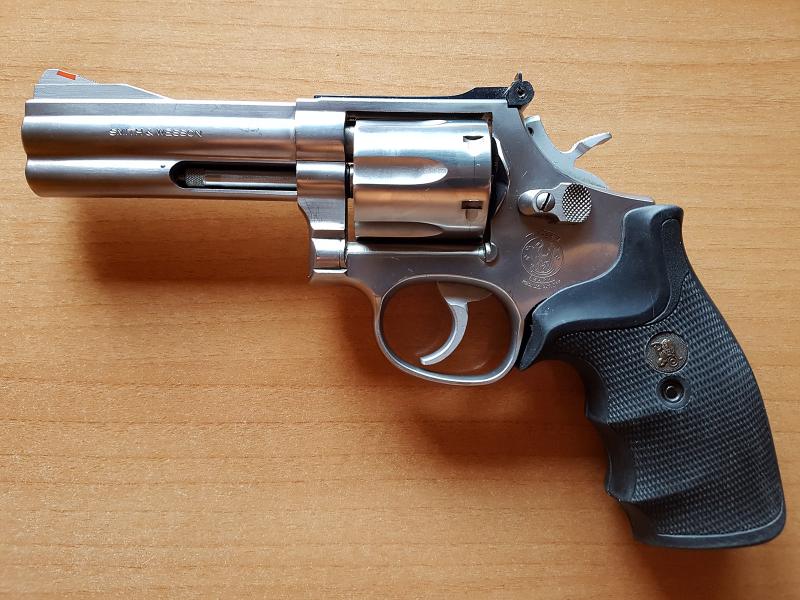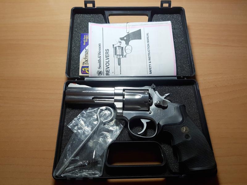Precioso revolver Smith Wesson modelo 686-3 de acero, sin apenas uso, calibre 357 Magnun, 38 Special, perfecto estado, 4 pulgadas, tambor de 6 cartuchos, cachas de goma anatómicas Pachmayr. Se trata de un revólver con sistema de doble acción, armazón cerrado y cilindro con apertura lateral hacia la izquierda, mediante cerrojo situado en el mismo lado del armazón y provisto de extractor manual de varilla. Este modelo es de la serie 3 (considerados los mejores). Lleva martillo de picode loro, es decir aguja percutora incluida en el martillo, y es de acero inoxidable de máxima calidad. Ideal para defensa personal o tiro deportivo. Se envía en su caja junto con manuales y elementos de limpieza. En el precio incluyo los gastos de envío y guía de circulación si fuera necesario. Anuncio serio. Por favor, abstenerse personal que no posea licencia para armas cortas tipo A, B, o en su caso F. Envío toda España a través de Nacex. Precio: 450 euros.