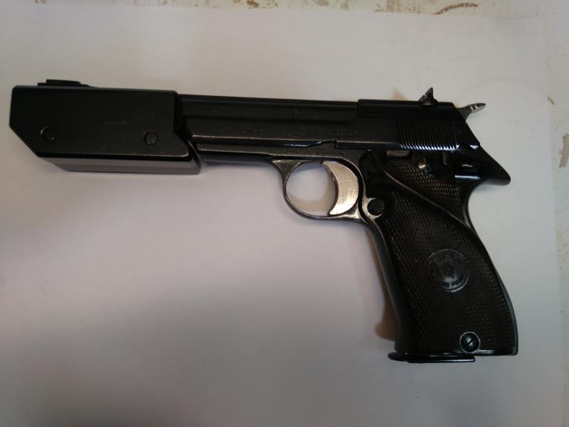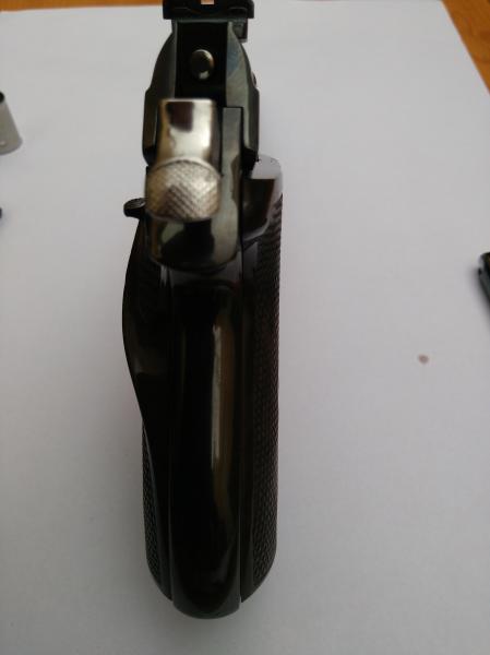 La pistola esta impecable, mejor ver en la mano. Se puede ver y probar en Sevilla. Se entrega con dos cargadores y los dos contrapesos que se ven las fotos. La pistola esta recién pavonada, engrasada y ajustada por armero profesional, a toda prueba.