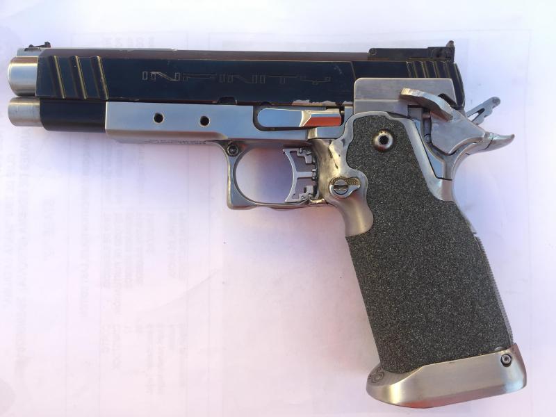Hola vendo pistola INFINITY del calibre 40. Es de 5 pulgadas el cañon. La corredera es de 4,5 pulgadas, mas corta que el cañon para minimizar el retroceso del arma. Funciona a la perfección. Poco usada. El cañon se puso nuevo hace dos años, mas fiable que los anteriores y de mayor dureza. Con un cargador la vendo por 2000 €. En la actualidad si algún interesado quiere verla esta depositada en la Armeria Top Gun ( Madrid) para su venta. Teléfono 626 669 312. Comeche