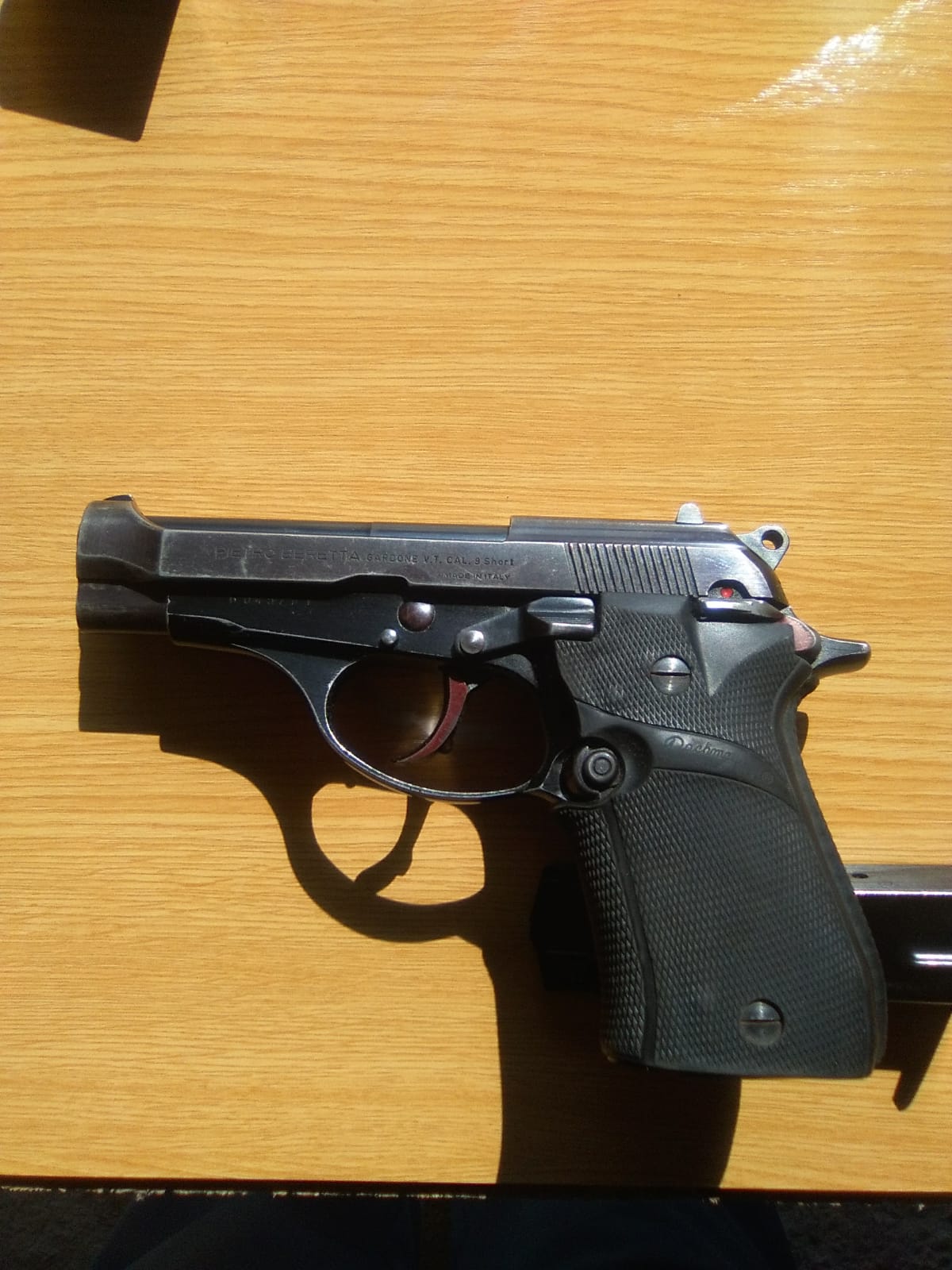 Un amigo tiene en venta esta pistola: marca Beretta de 9 corto ,14 disparos,dos cargadores,cachas de madera,fundas.