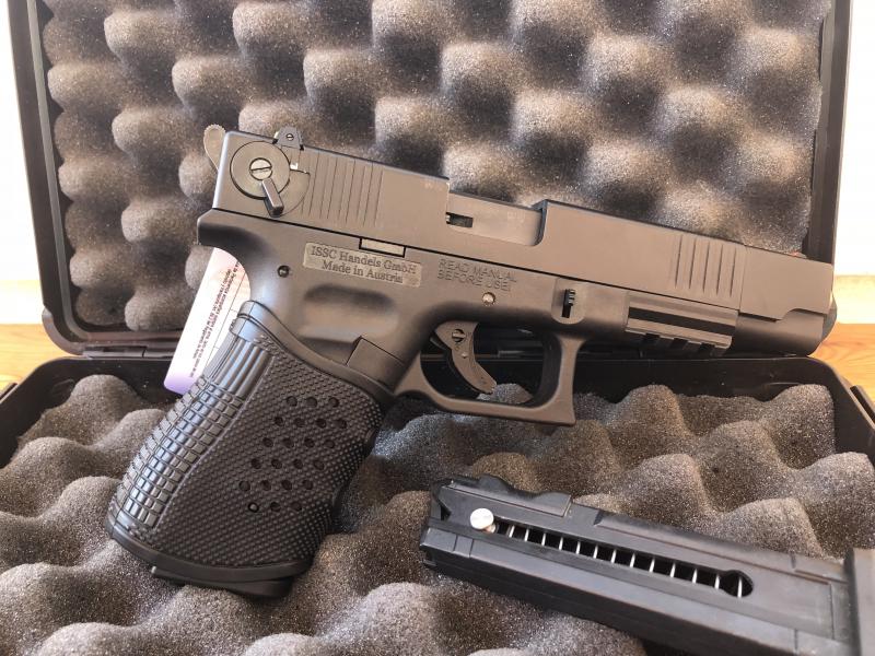 Es una fantástica imitación a la Glock y hay quien la usa para entrenar en ipsc y es muy divertida además de tener una buena precisión. Nueva vale más de el doble. Se entrega con dos cargadores y maletín original e instrucciones con todo como venia de fabrica además del gatillo original y refinado.