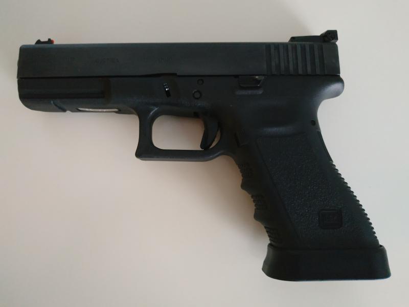 GLOCK17 3GEN en perfecto estado, con muy pocos disparos. Con alza+punto de mira LPA, 4 cargadores Glock, cinturón CR SPEED y funda de extracción rápida amadini Ghost, y 4 portacargadores marca FOBUS, embocaduradora del cargador y palanca de retenida sobredimensionados, muelle recuperador DPM. Comprada a capricho pero apenas usada en 3 ocasiones por ampliación de familia.